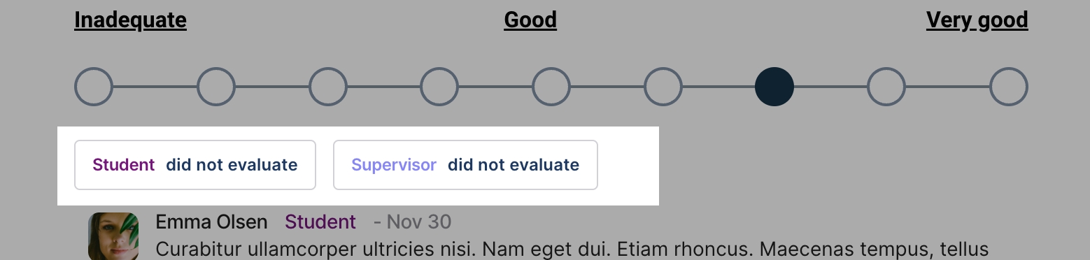 Identifiser Andre Vurderinger: Identifiser raskt om andre parter (studenter, veiledere eller begge deler) valgte å ikke vurdere dette spørsmålet. De kan markere avkrysningsboksen tilsvarende.
