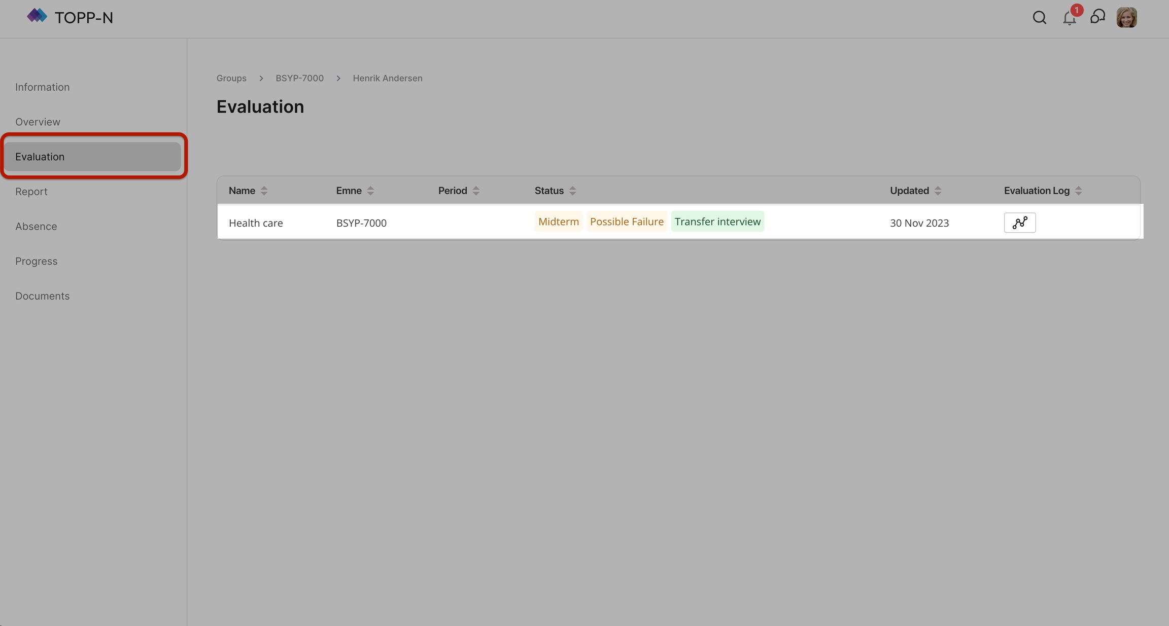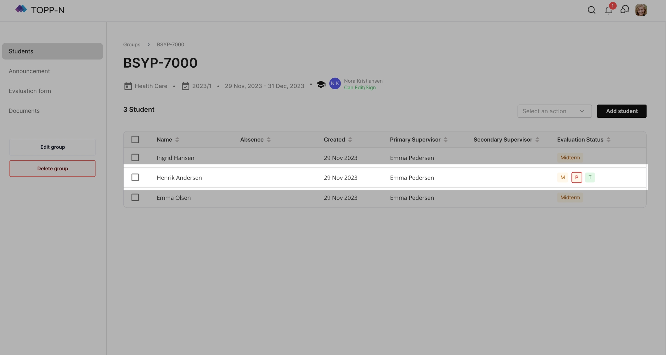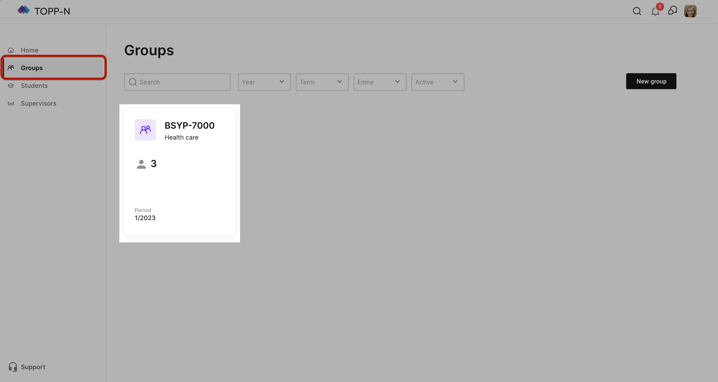 Alternativt kan du få tilgang til vurderingsskjemaet gjennom Grupper-delen: