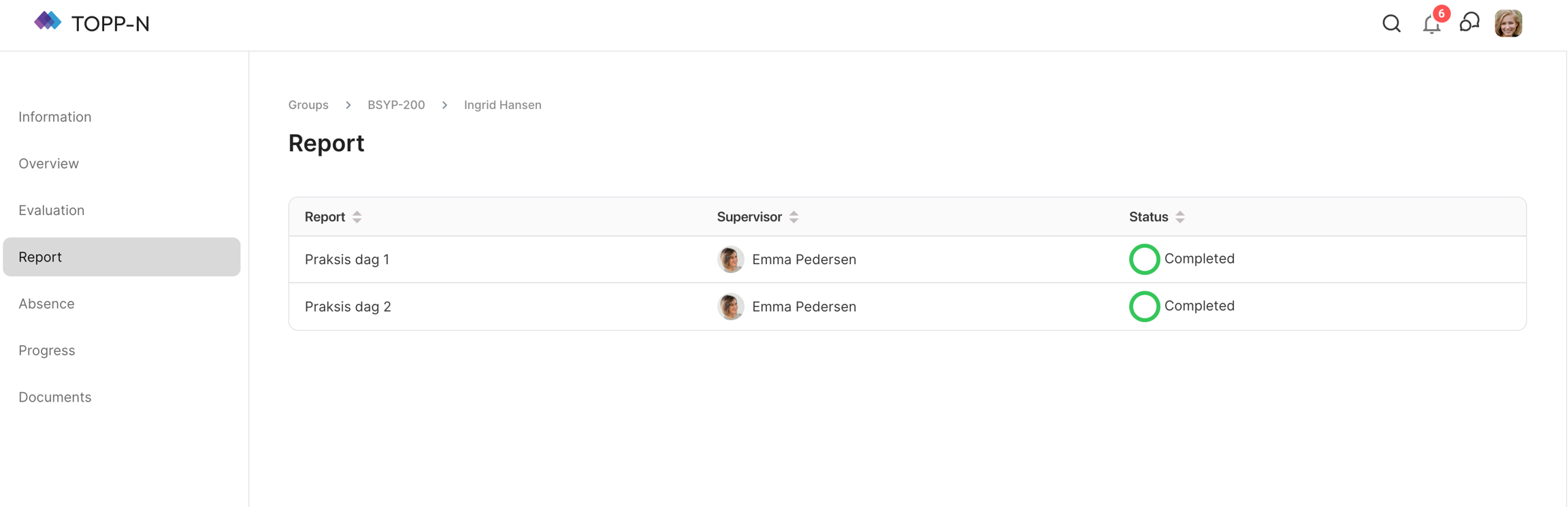 Quickly check the status of each report, distinguishing between completed and ongoing reports, providing a snapshot of the student's reporting activities.