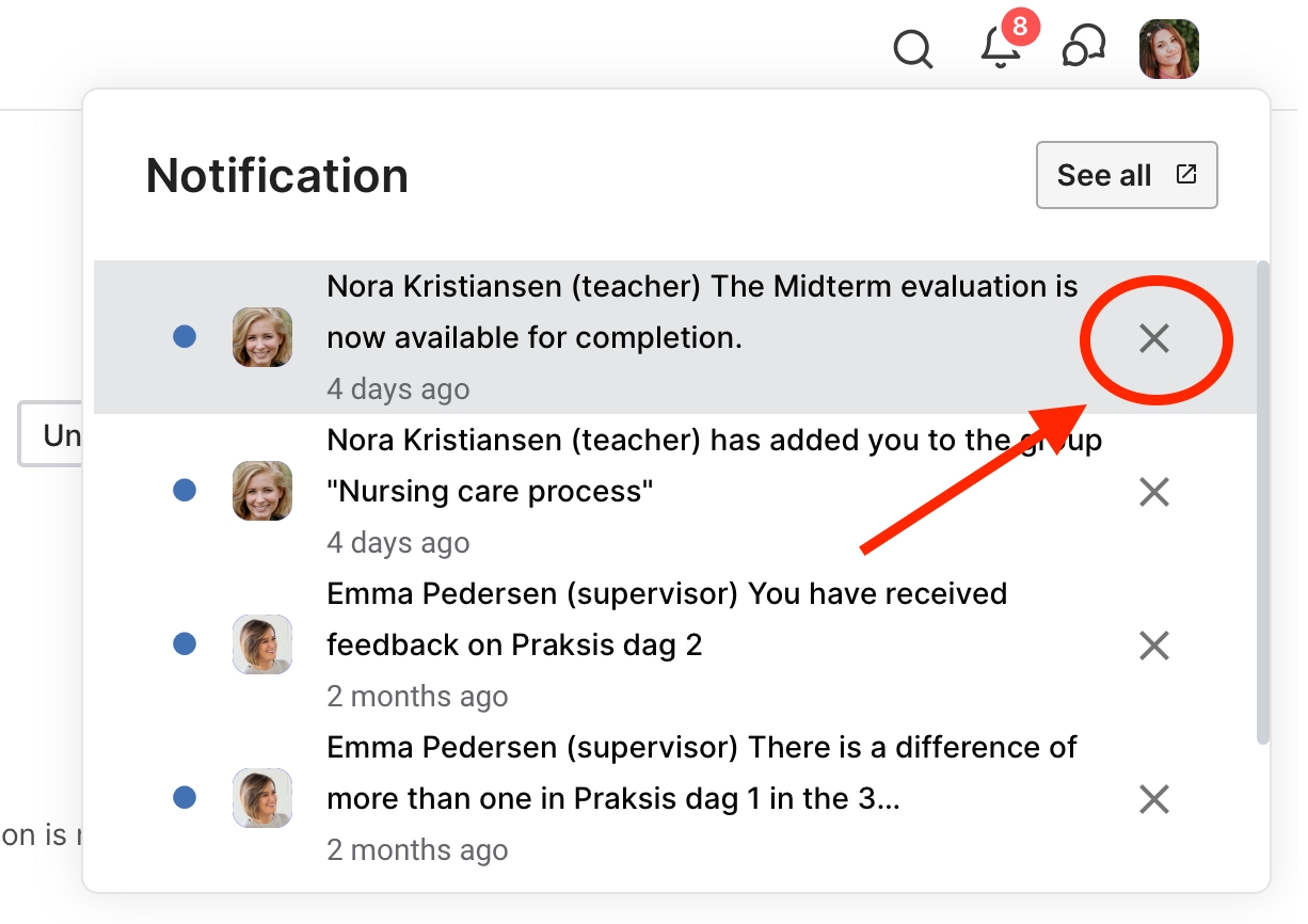 Hold musepekeren over varselet og klikk på "X"-ikonet.