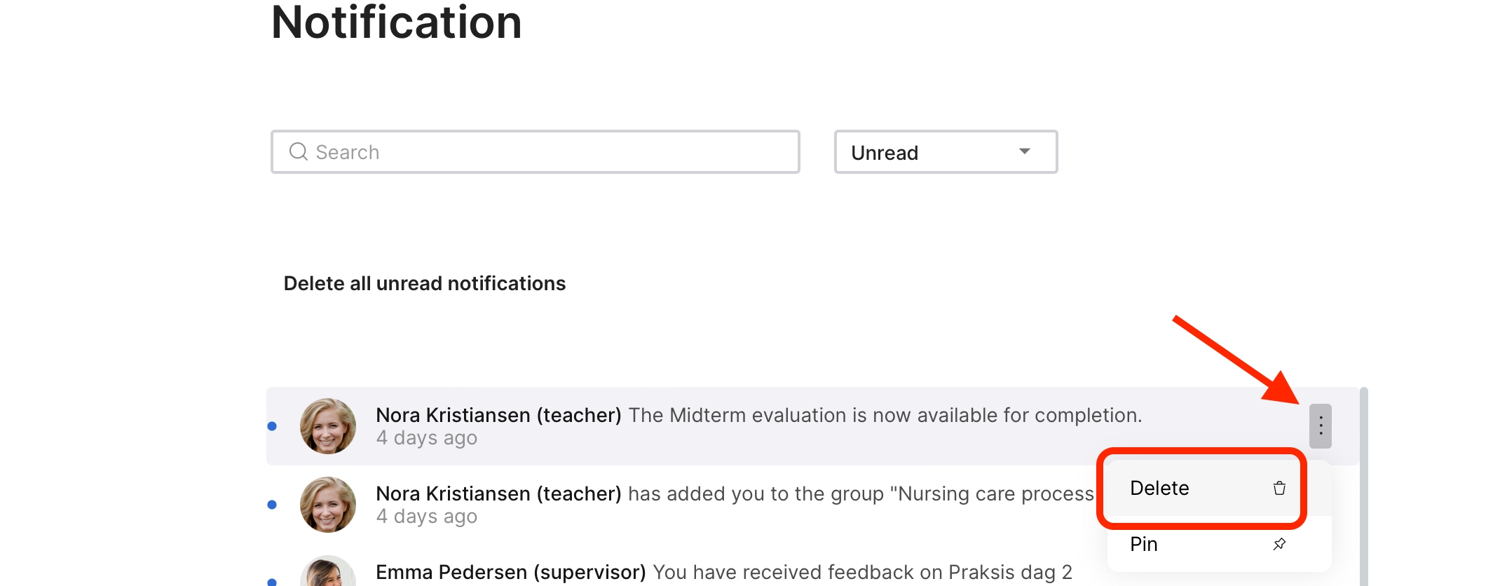 Permanent sletting av varsler: For å slette et varsel permanent:
